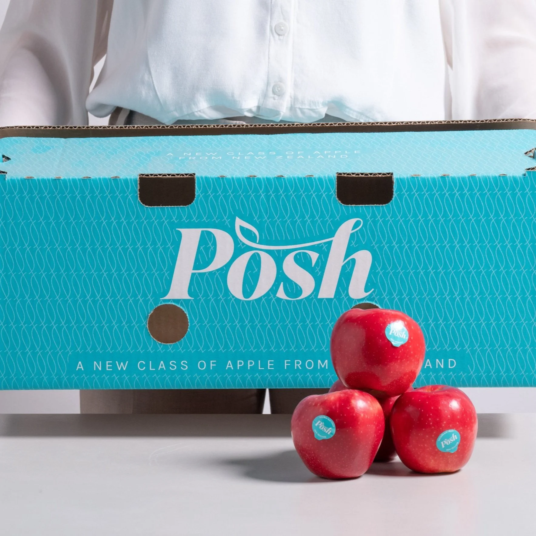 Posh™ was designed using natural plant-breeding methods by the world-renowned New Zealand Plant & Food Research, commercialised by Prevar. Next Generation Apples (NGA) owns the global licensing rights, a joint venture between generational Nelson based growers Golden Bay Fruit and Taylor Corporation from the Hawkes Bay. Posh™ apples are currently grown exclusively by these two New Zealand growers.